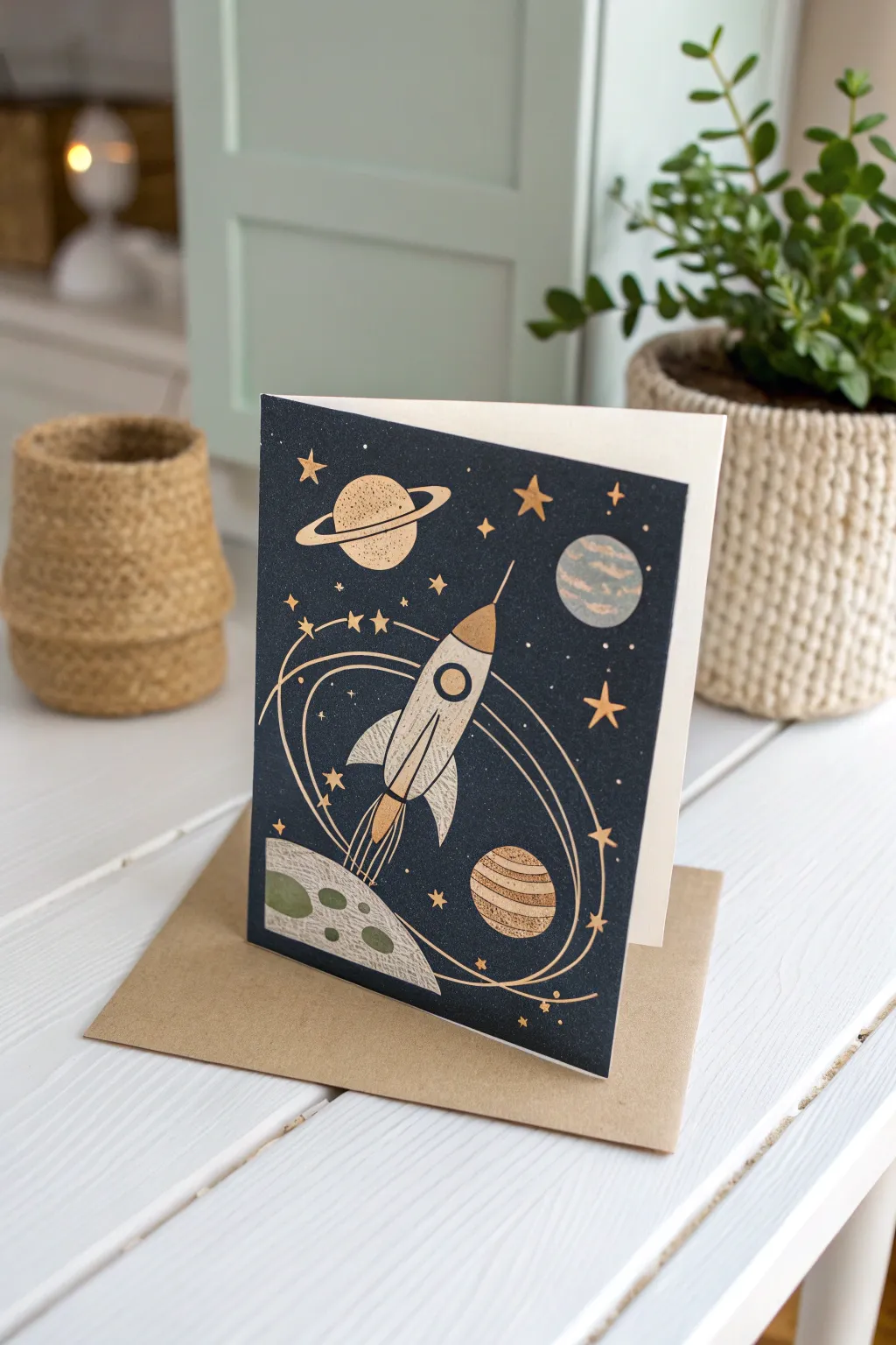Dive into the cosmos with art cards featuring rockets and planets. My fascination with the universe inspires me to create dreamy, otherworldly scenes.