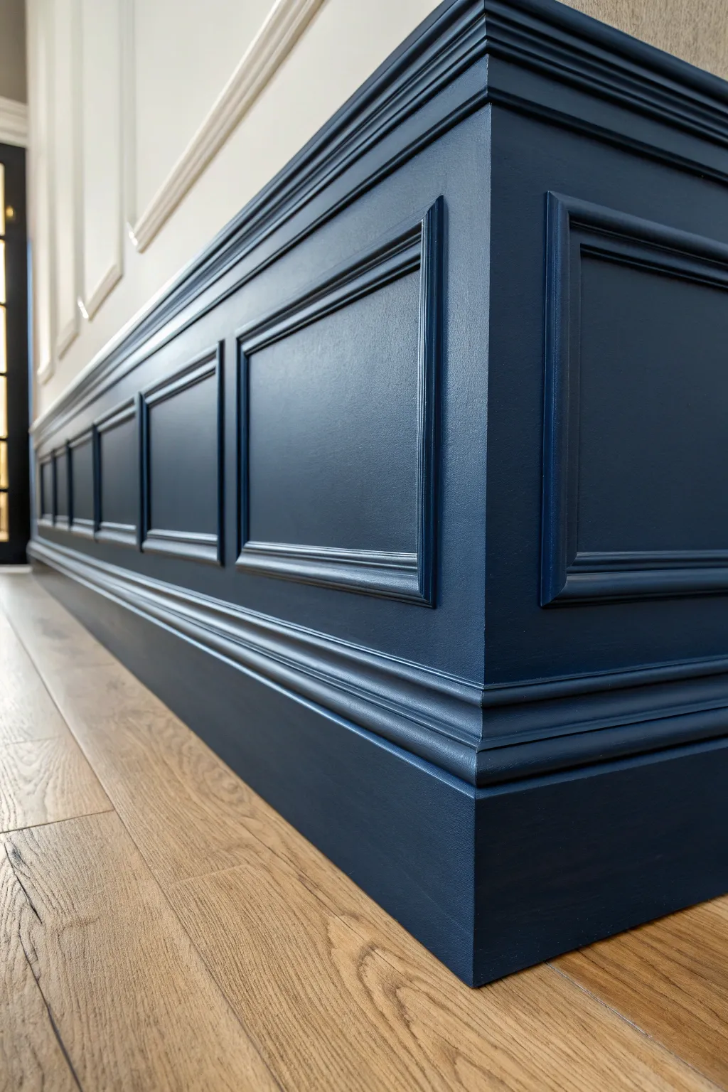 Elevate your space with bold, colorful baseboards for a touch of modern craftsmanship.