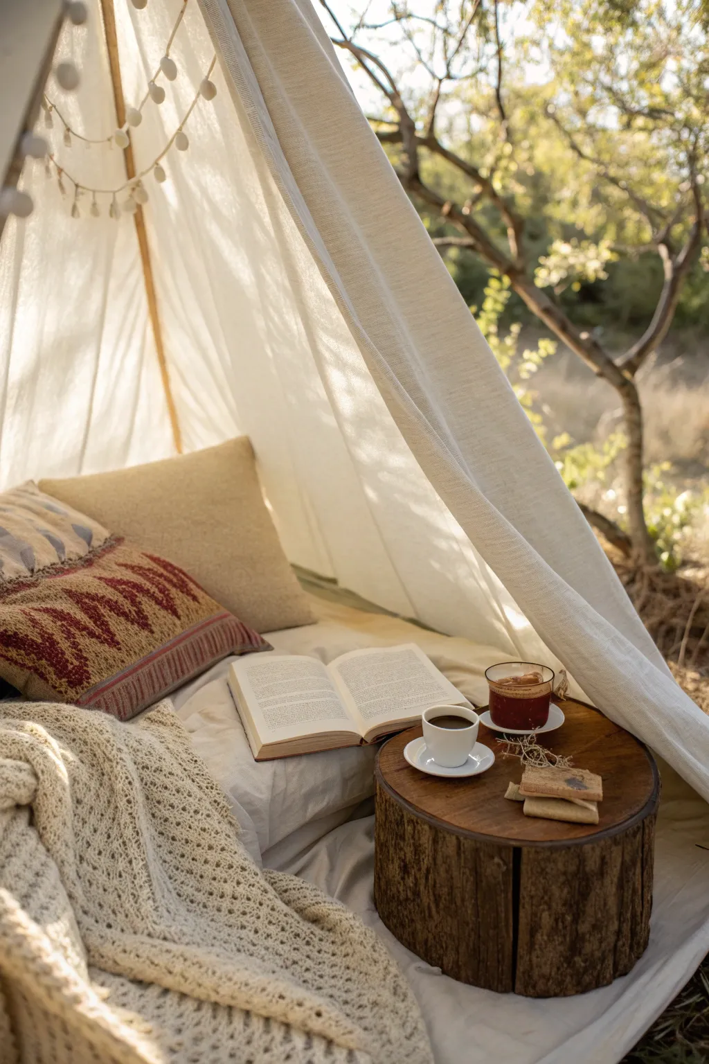 Use cushions and draped fabrics to personalize your tent. Mixing different textures is my go-to trick for a layered look.