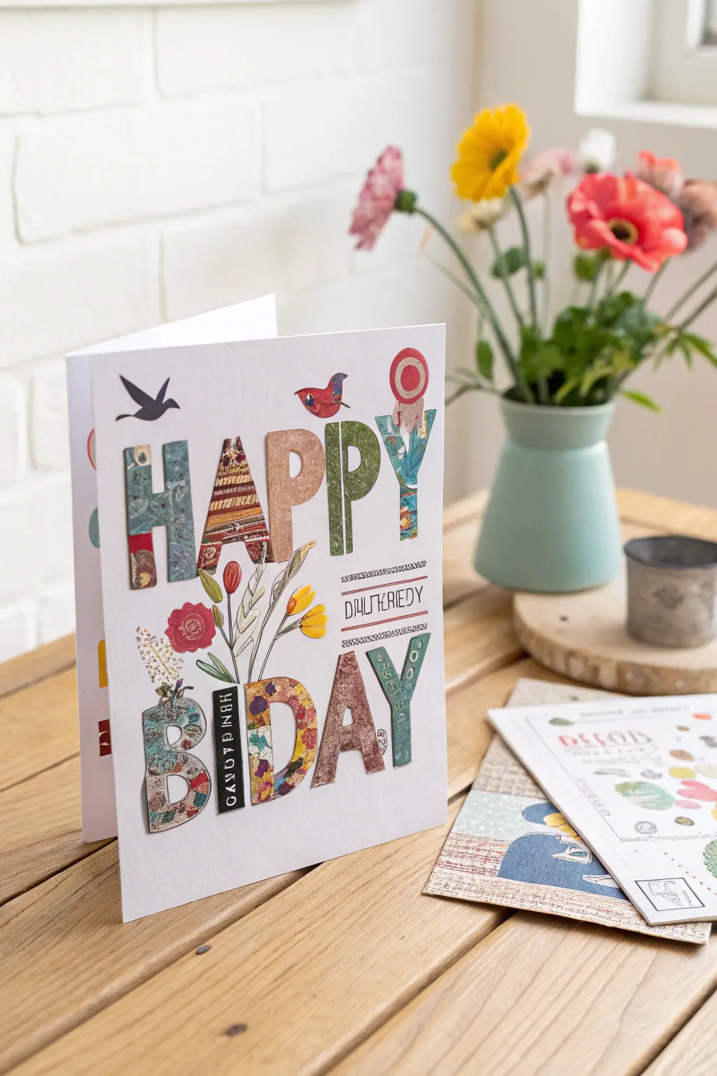 Transform old magazines into a vibrant card by cutting out letters and images to create a unique design. It’s creative, fun, and environmentally friendly!