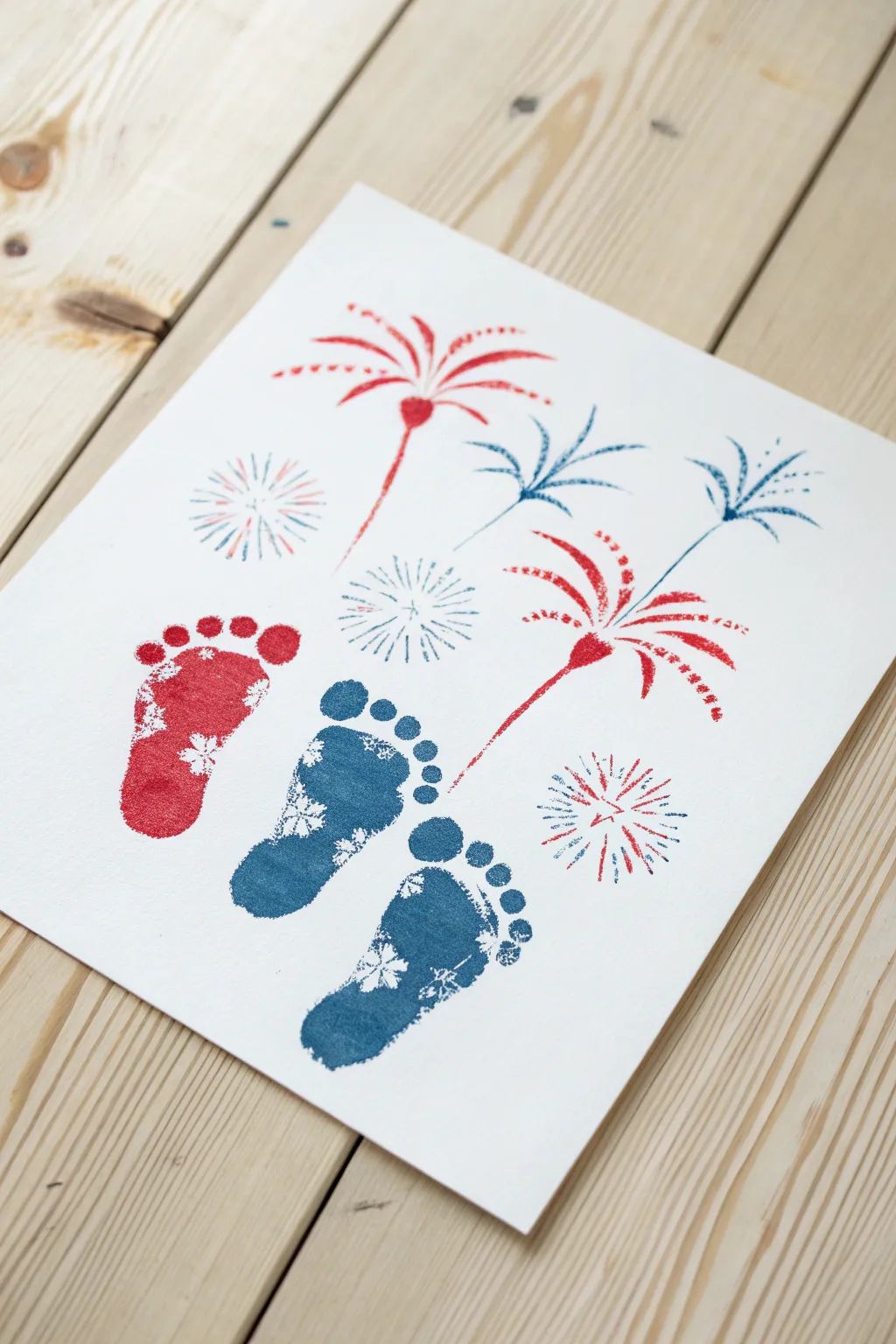 Capture the joy of creativity with Star-Spangled Footprints, a charming addition to your 4th of July decor.