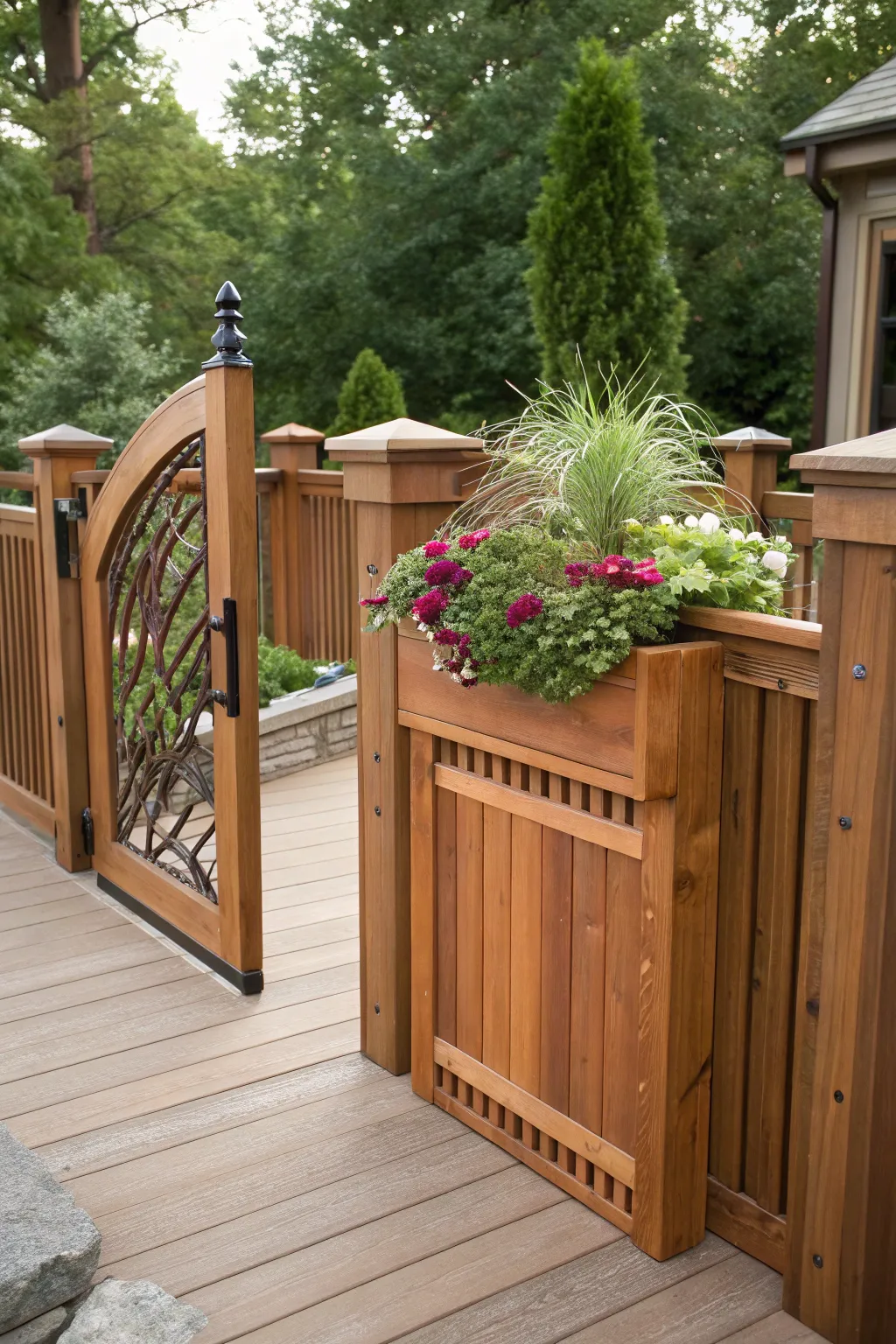 - Wooden Deck Planter Box: Enhance your gate with a charming wooden planter, adding greenery to your entrance.