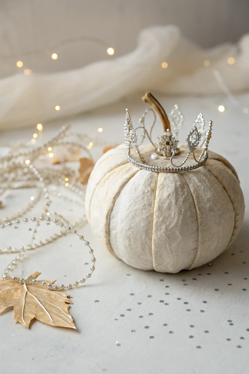 Transform your pumpkin into a princess with a tiny tiara and some sparkly embellishments. It’s a royal way to celebrate the season.