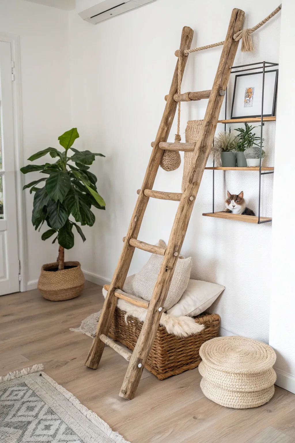 An old wooden ladder can transform into a spectacular climbing frame for your cat. I repurposed an old ladder, and now it’s a favorite photo backdrop for my Instagram!