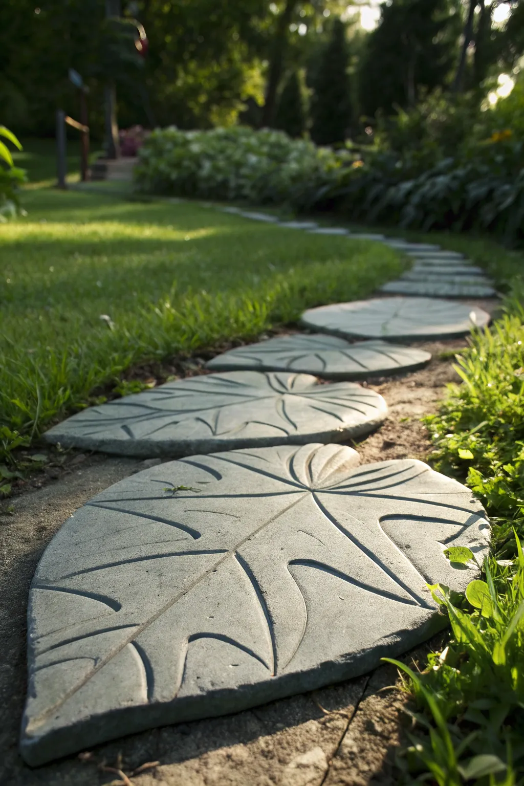 Create a whimsical trail with concrete stepping stones in playful shapes. My own garden path feels like a fairytale come to life.