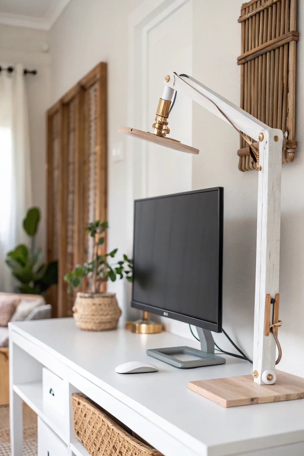 Craft a wooden stand using leftover planks for a rustic touch. I made one last spring, and the natural wood grain adds a warm vibe to my workspace.