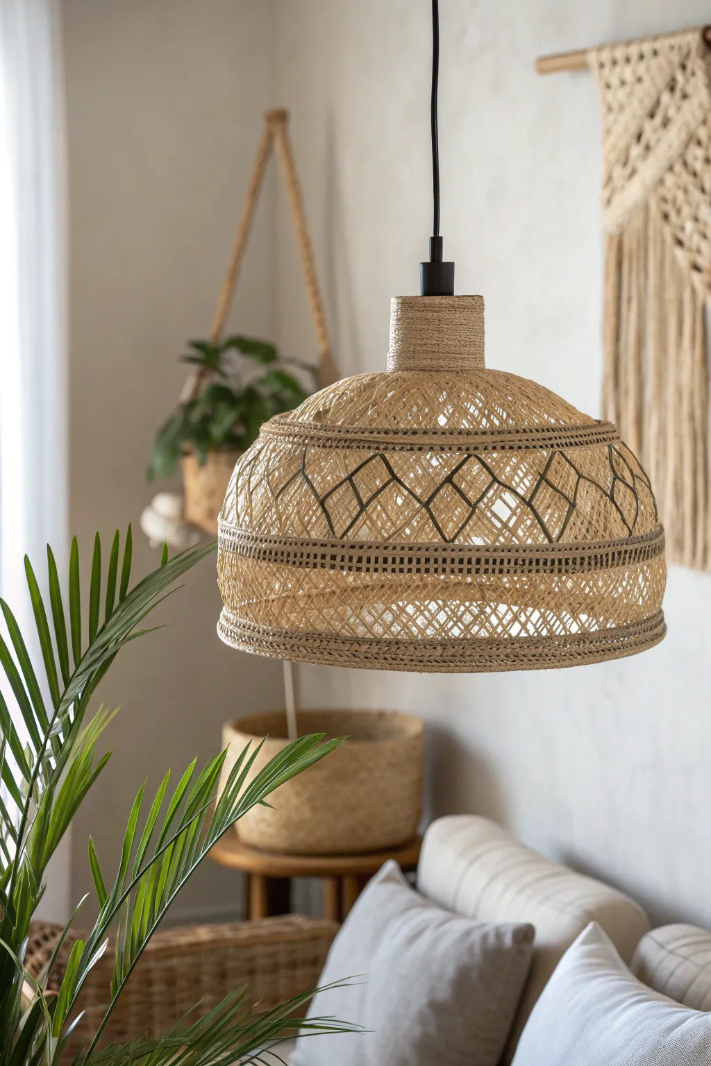 - Natural Fiber Woven Basket: Create a stunning boho pendant light with this natural fiber woven basket for an earthy touch.