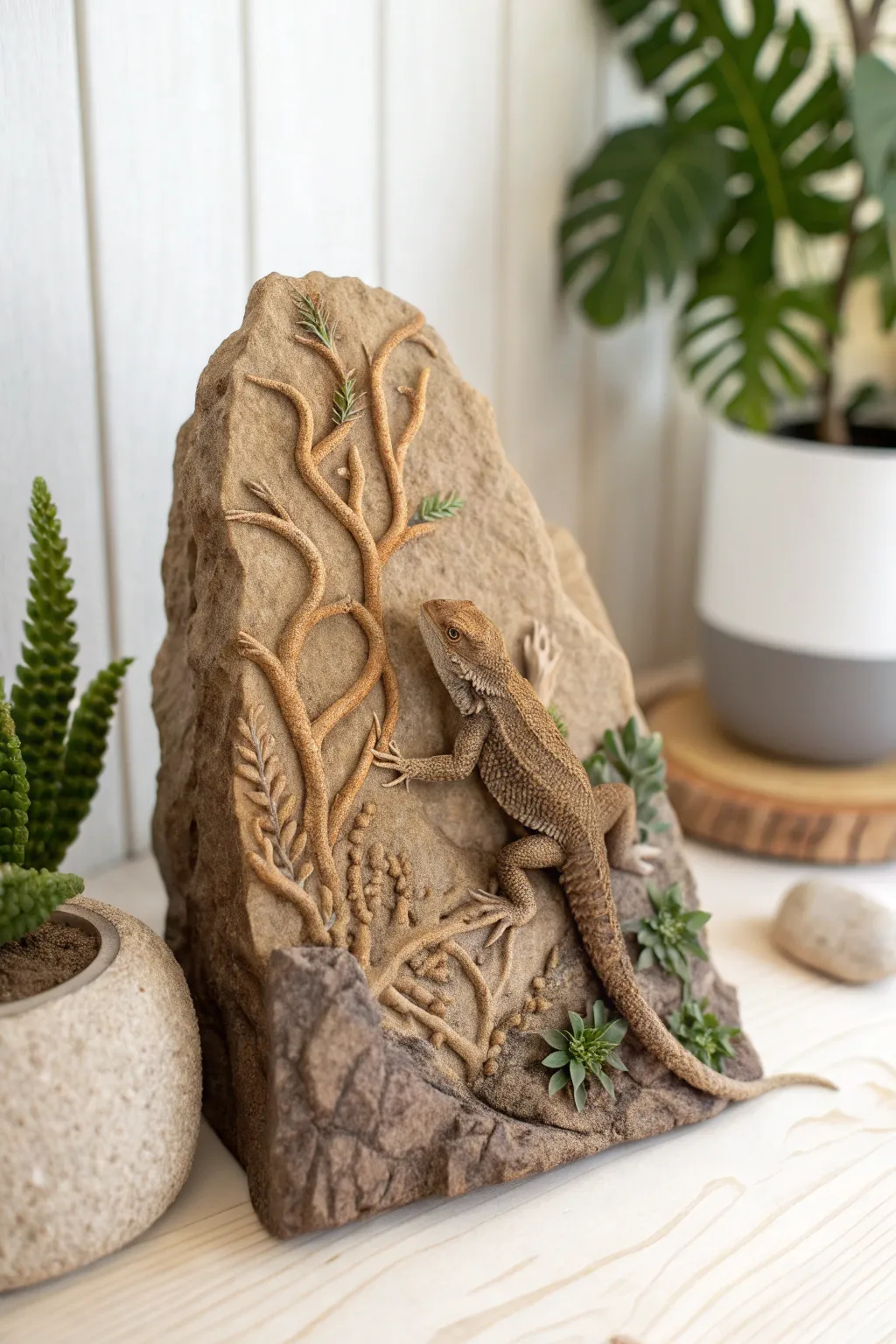 Integrate natural caves into the background using carved foam or clay. These provide a safe retreat for shy reptiles and add another layer of intrigue to the scenery.