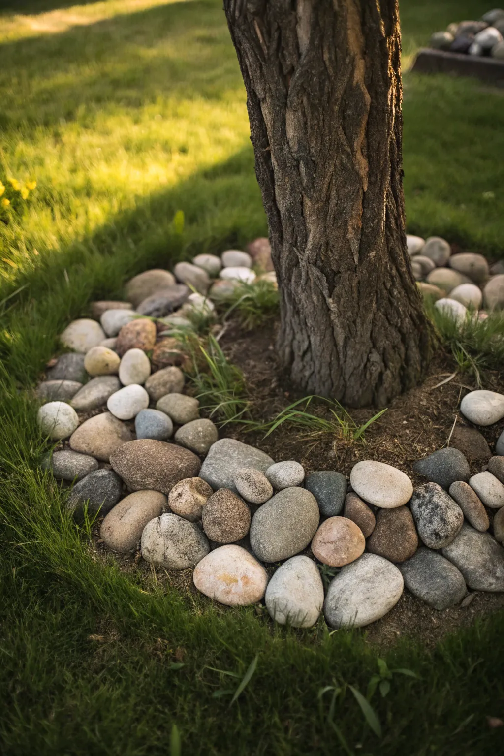 Using natural stones around your tree gives it a grounded, earthy feel. I once used river stones, and they beautifully complemented the surrounding greenery.
