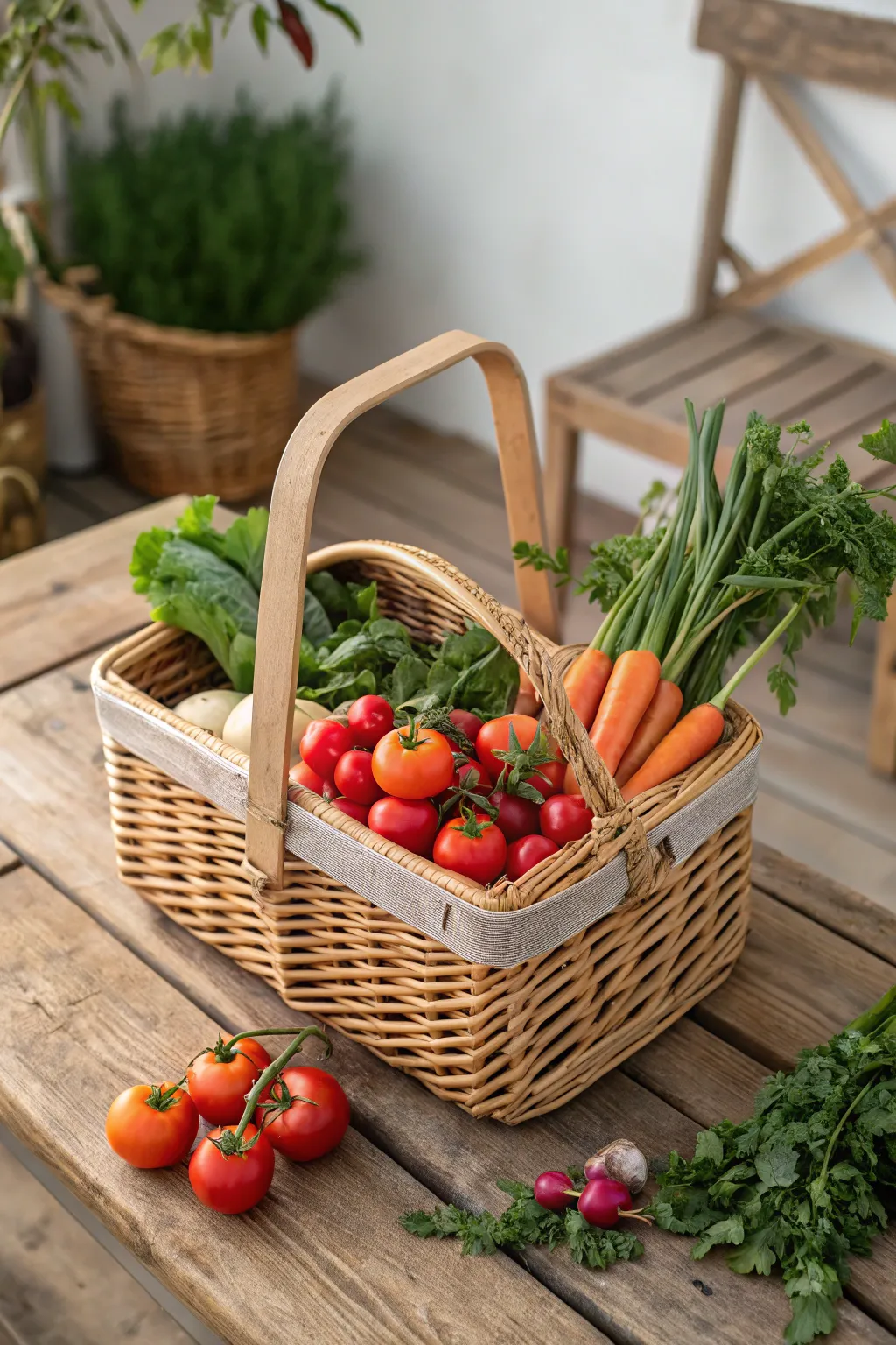 - Wicker Harvest Basket: Showcase your colorful harvest with a classic wicker basket for a rustic, charming look.
