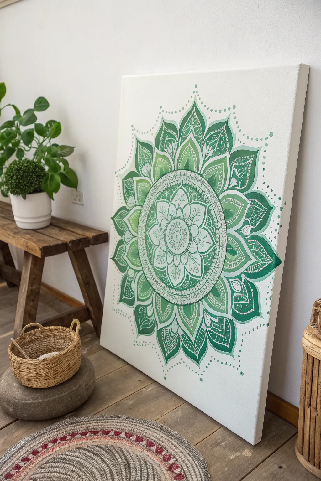 Paint intricate mandalas using various green tones for a meditative vibe. My meditation corner gained an air of tranquility with this design.