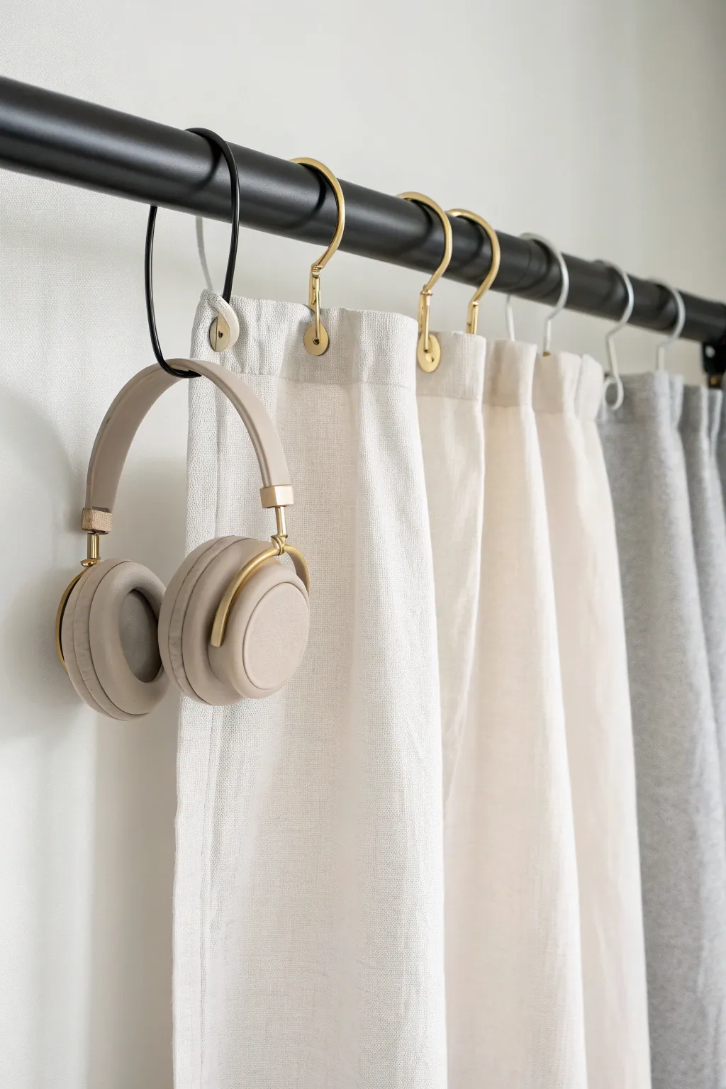 - Metal Curtain Hooks with Clips: Use durable curtain hooks to neatly organize headphones, ensuring easy access and decluttered spaces.