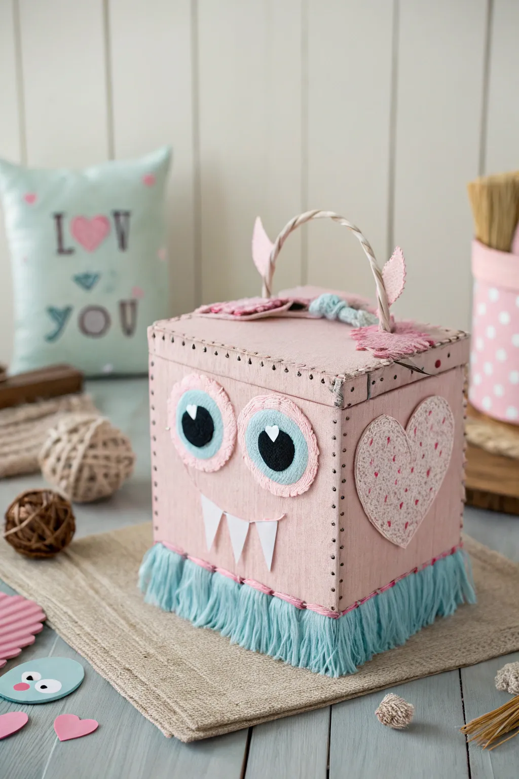 Create a playful monster box with large googly eyes and a bright, colorful design. Kids will love personalizing their own unique creature.
