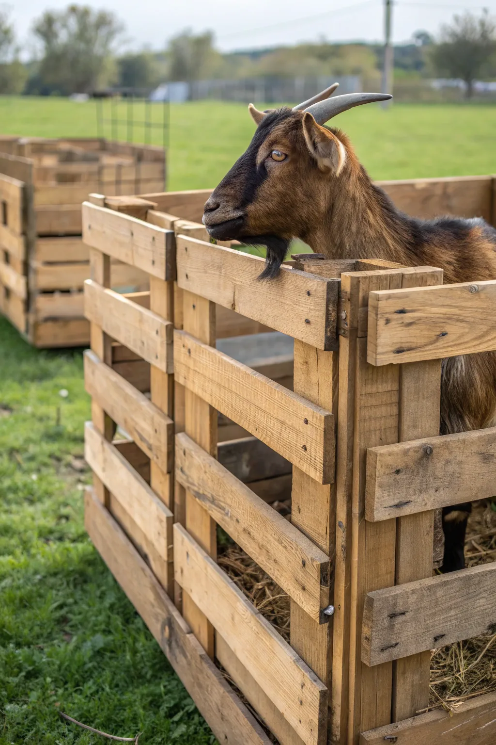 Turn pallets into the ultimate goat playground, including shelters and climbing areas. This complete setup is a testament to how a little creativity can transform humble materials into a goat’s paradise.