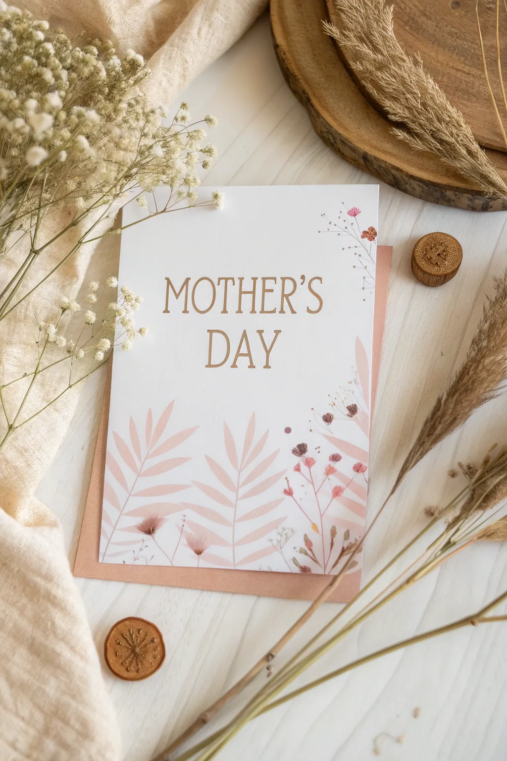 A floral watercolor card is a timeless way to capture your mom’s heart. I love dipping into soft pastel hues and letting the colors flow freely across the paper – it’s like painting a garden from my imagination.