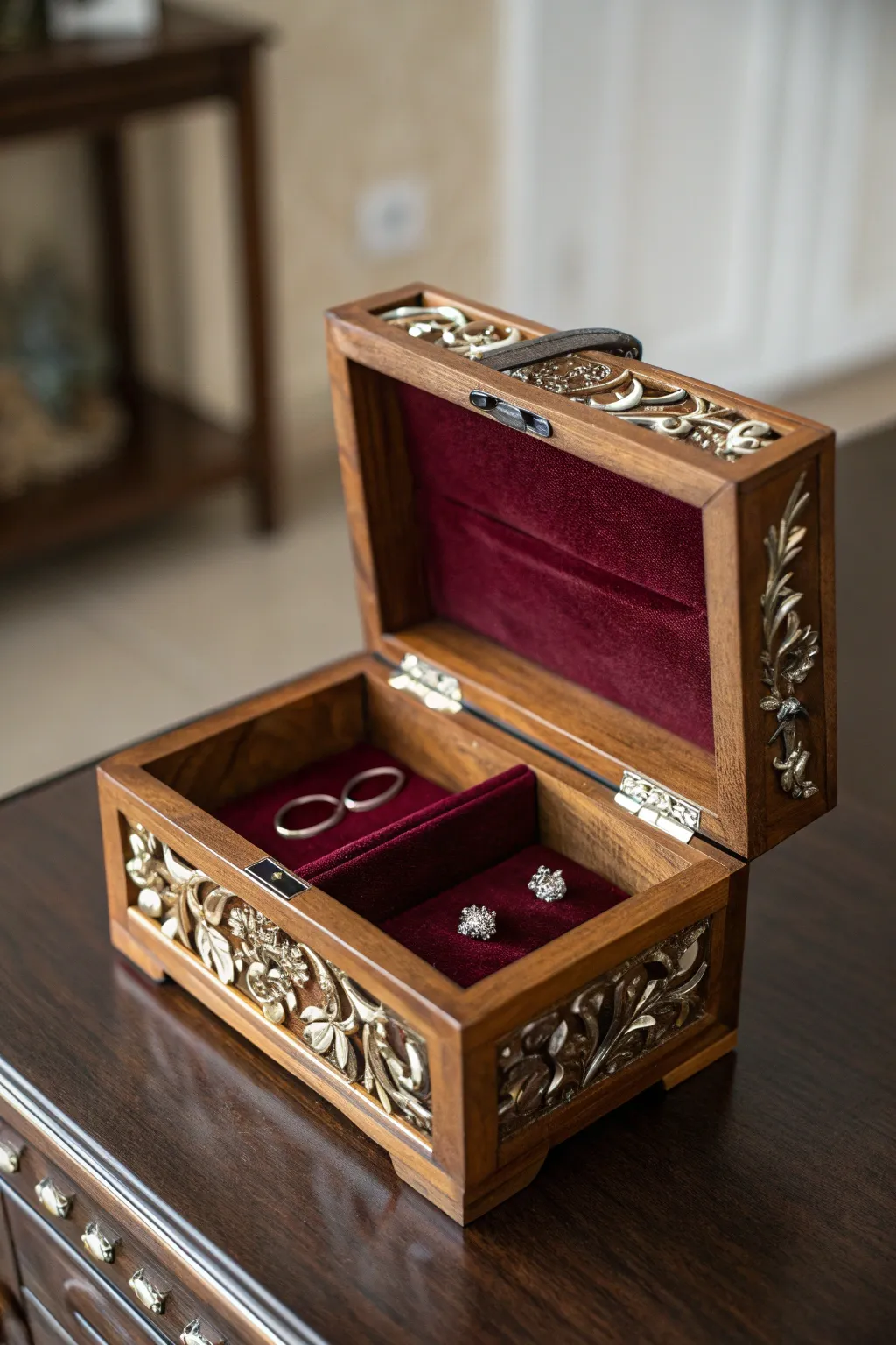 Store your treasures in a sophisticated jewelry box. I used velvet lining to keep my pieces safe and chic.