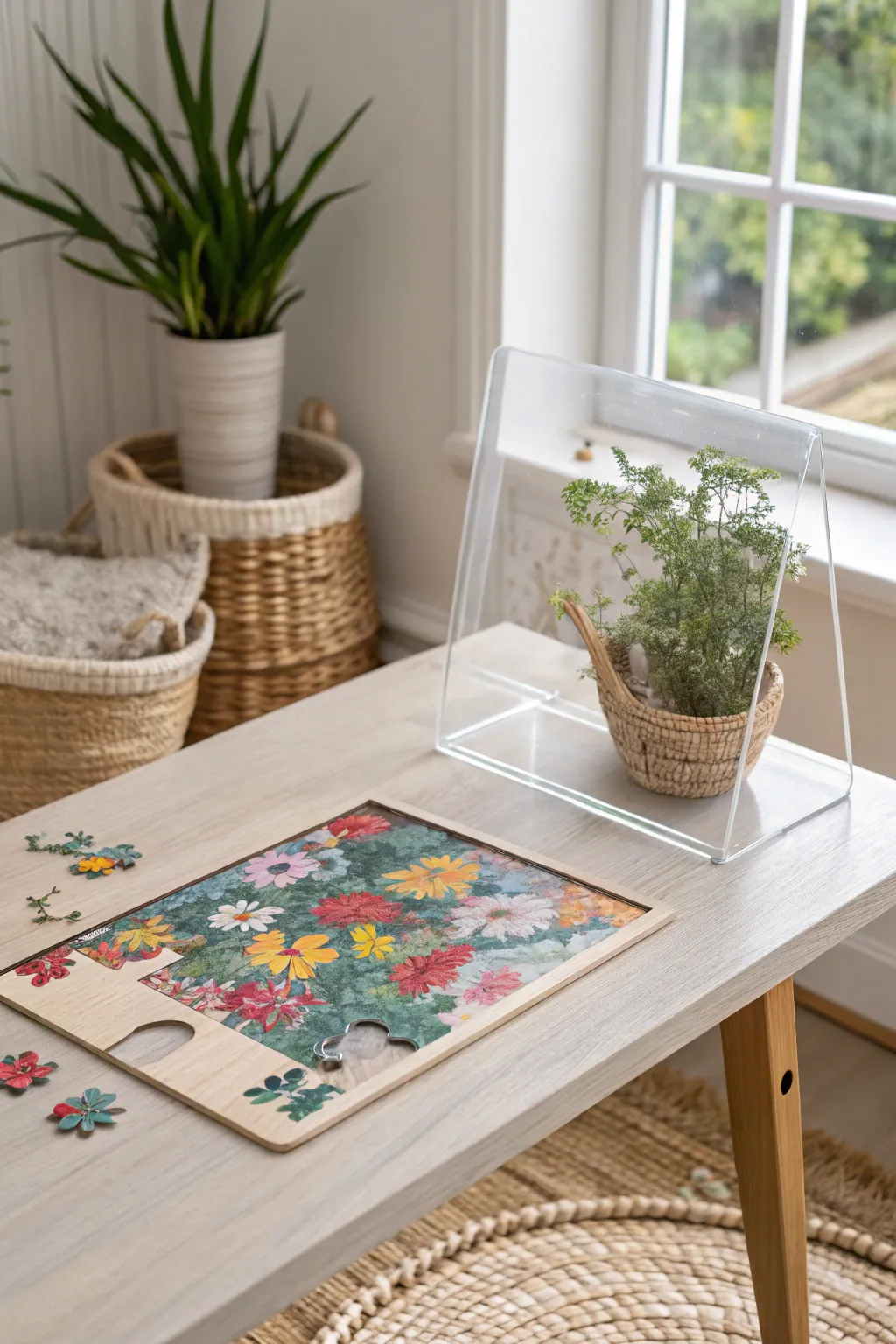 Protect your puzzle with a clear acrylic overlay. It keeps everything in place, and I love how it makes the colors pop!
