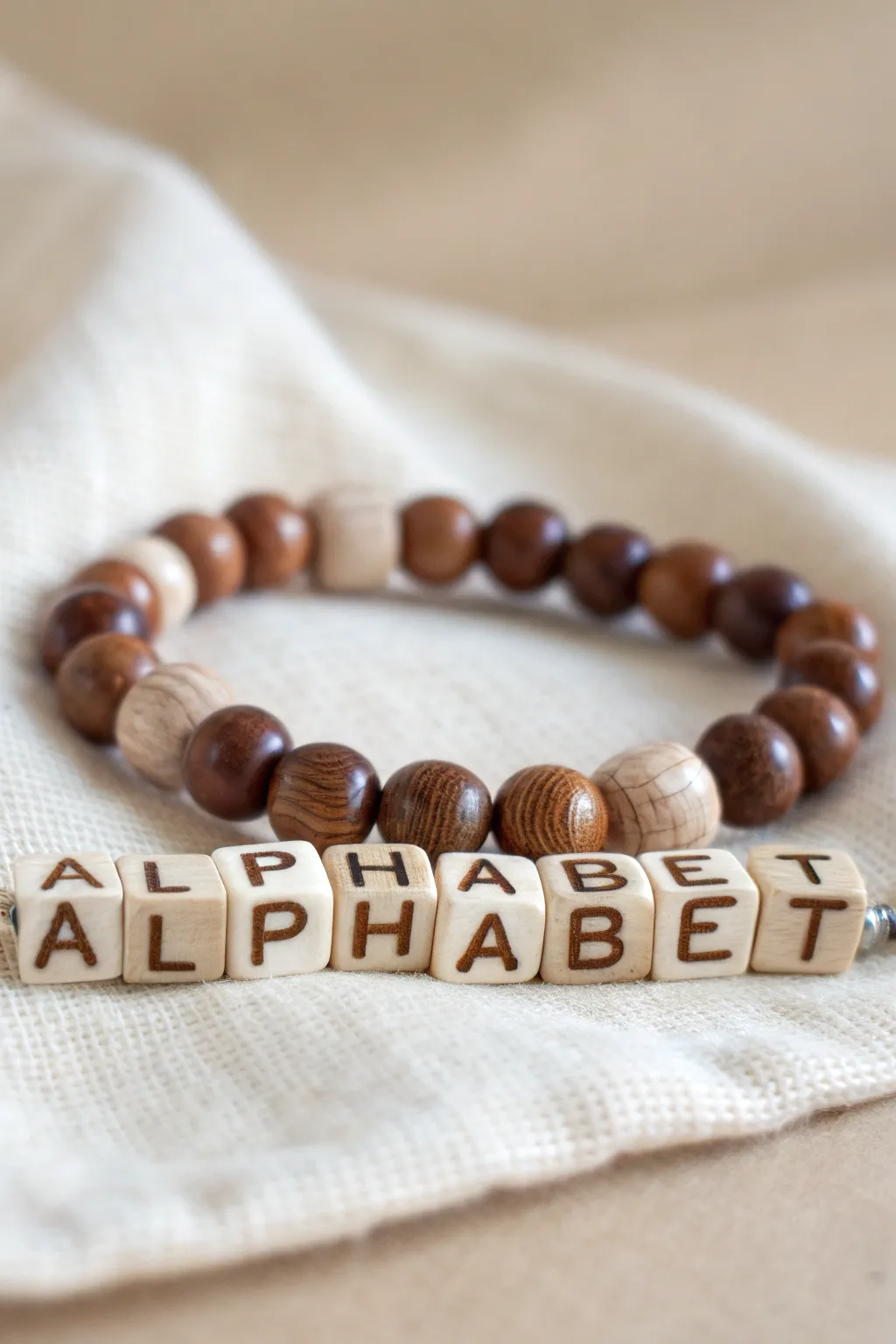 Use wooden beads alongside your alphabet beads for a rustic, nature-inspired look. It’s like carrying a little piece of the outdoors with you.