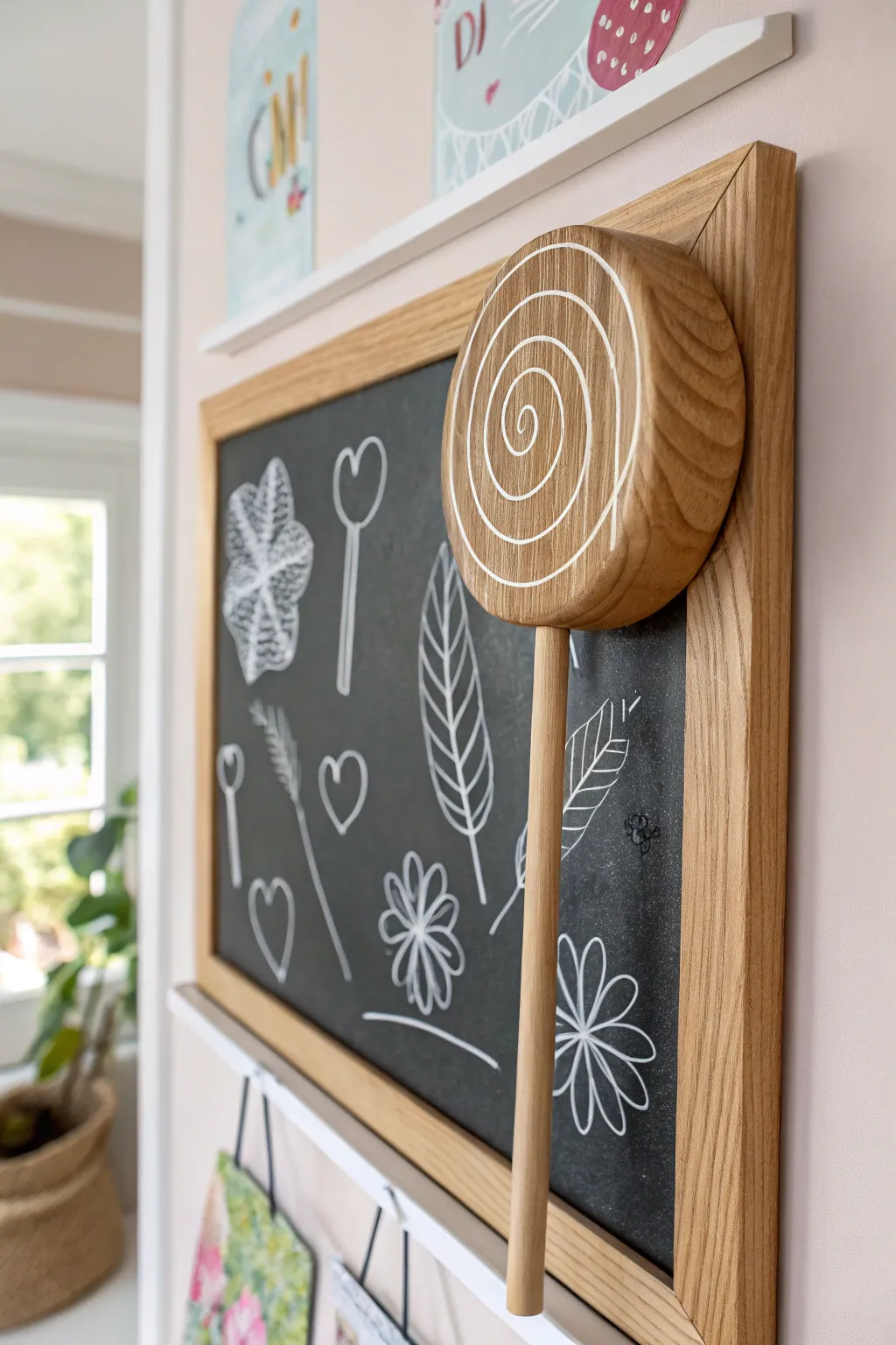Incorporate a chalkboard area within your lollipop board for doodling and messages. This adds a personal and changeable feature to your decor.