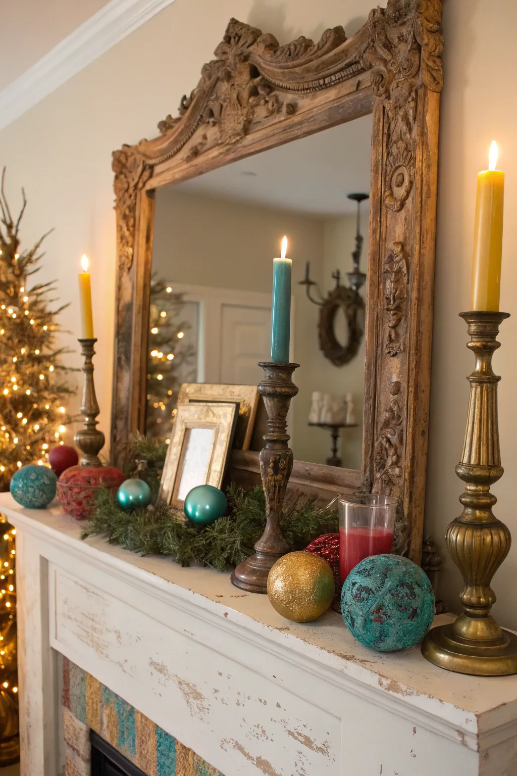 Incorporate antique finds for charming vintage vibes. I love how these pieces tell a story and add character to the mantel.