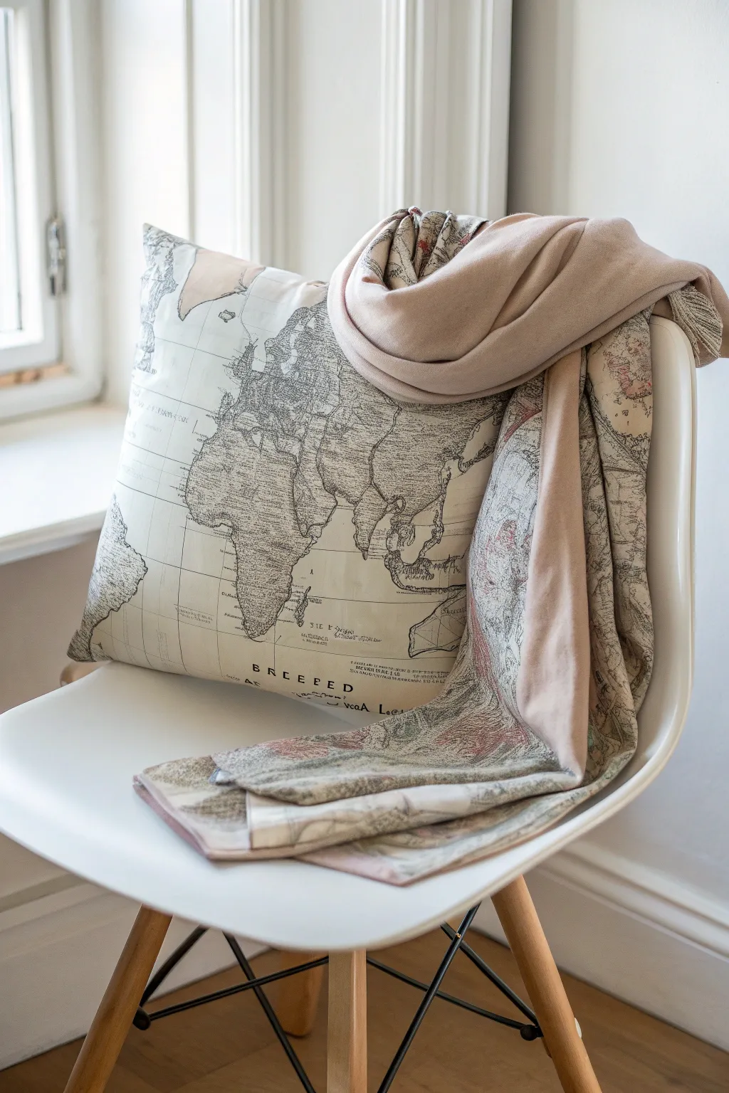 Use fabric from travel-related garments to create a pillow that encapsulates wanderlust. I turned an old map-print scarf into a pillow, and now it’s a constant reminder of my adventures.