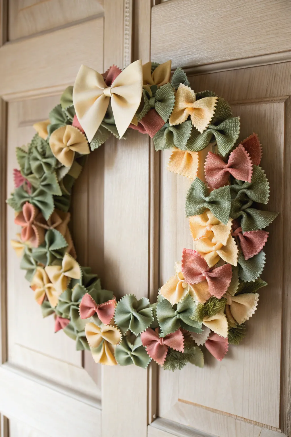 Why not welcome guests with a noodle wreath on your door? I love crafting these using colorful pasta; it brings a playful, yet elegant touch to any entrance.