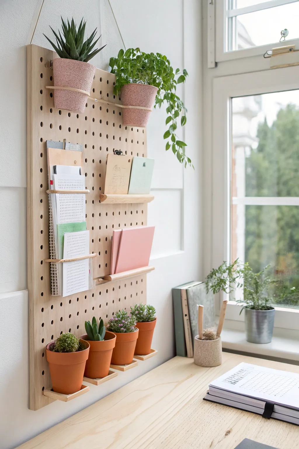 Create a pegboard file system for a customizable and fun way to organize. It adds a playful touch to my office while keeping everything visible and organized.