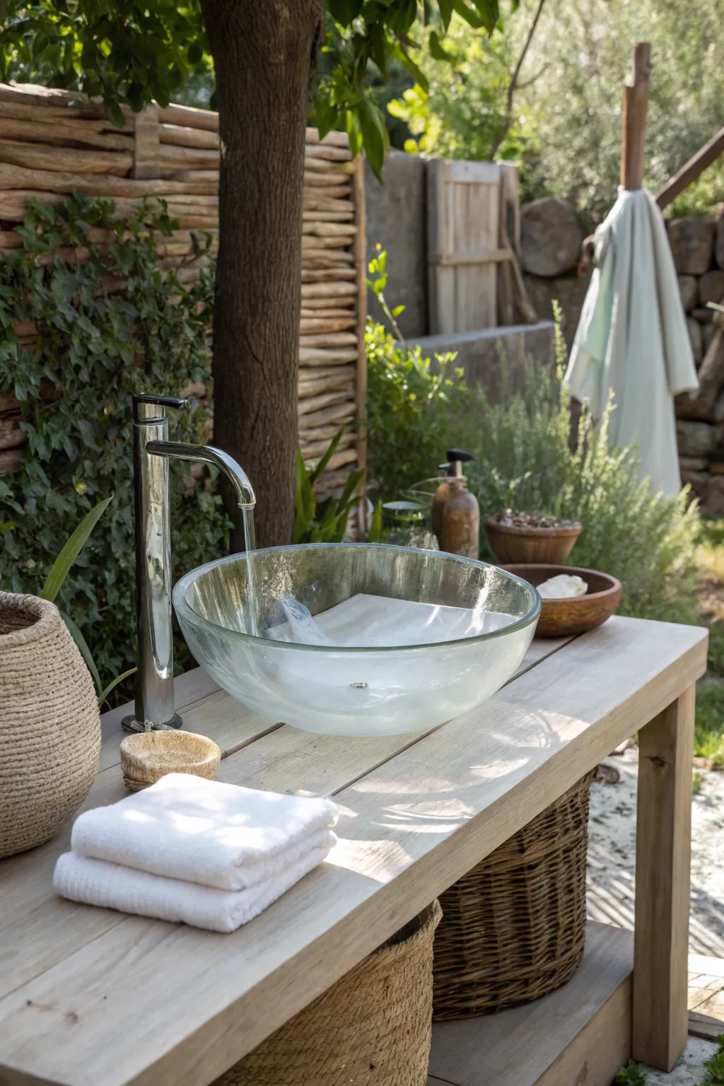 - Crystal Clear Glass Countertop Cover: Transform your outdoor sink with a crystal-clear glass top. Add sparkle and sophistication easily.