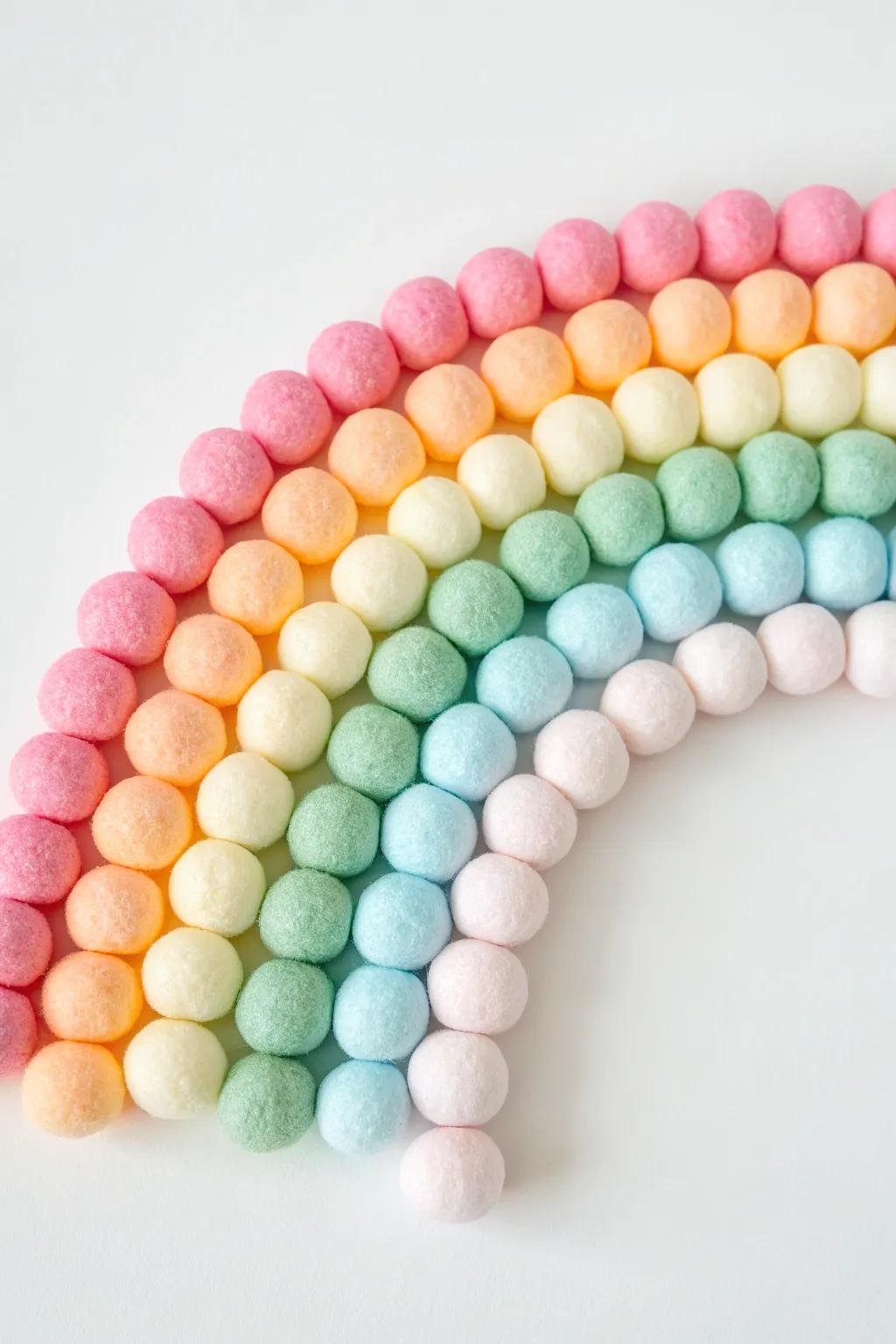 Bring a splash of color into your space with a handmade cotton ball rainbow.