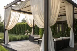 • Weatherproof Curtain Panels: Install durable curtain panels to protect against wind while adding elegance to your pergola.