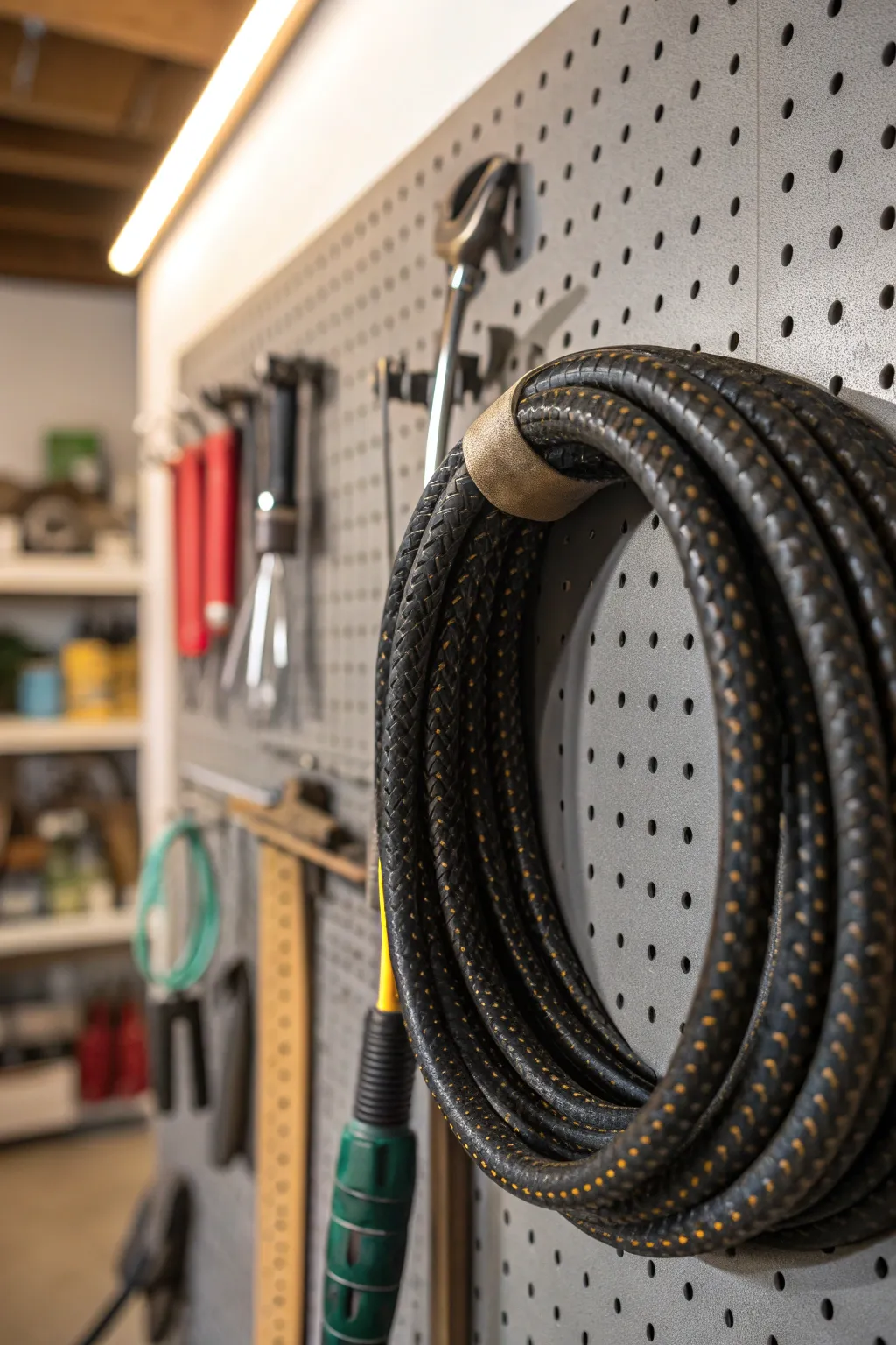 - Garden Hose by the Foot: Use garden hose pieces to craft unique, flexible hooks for your pegboard organization.