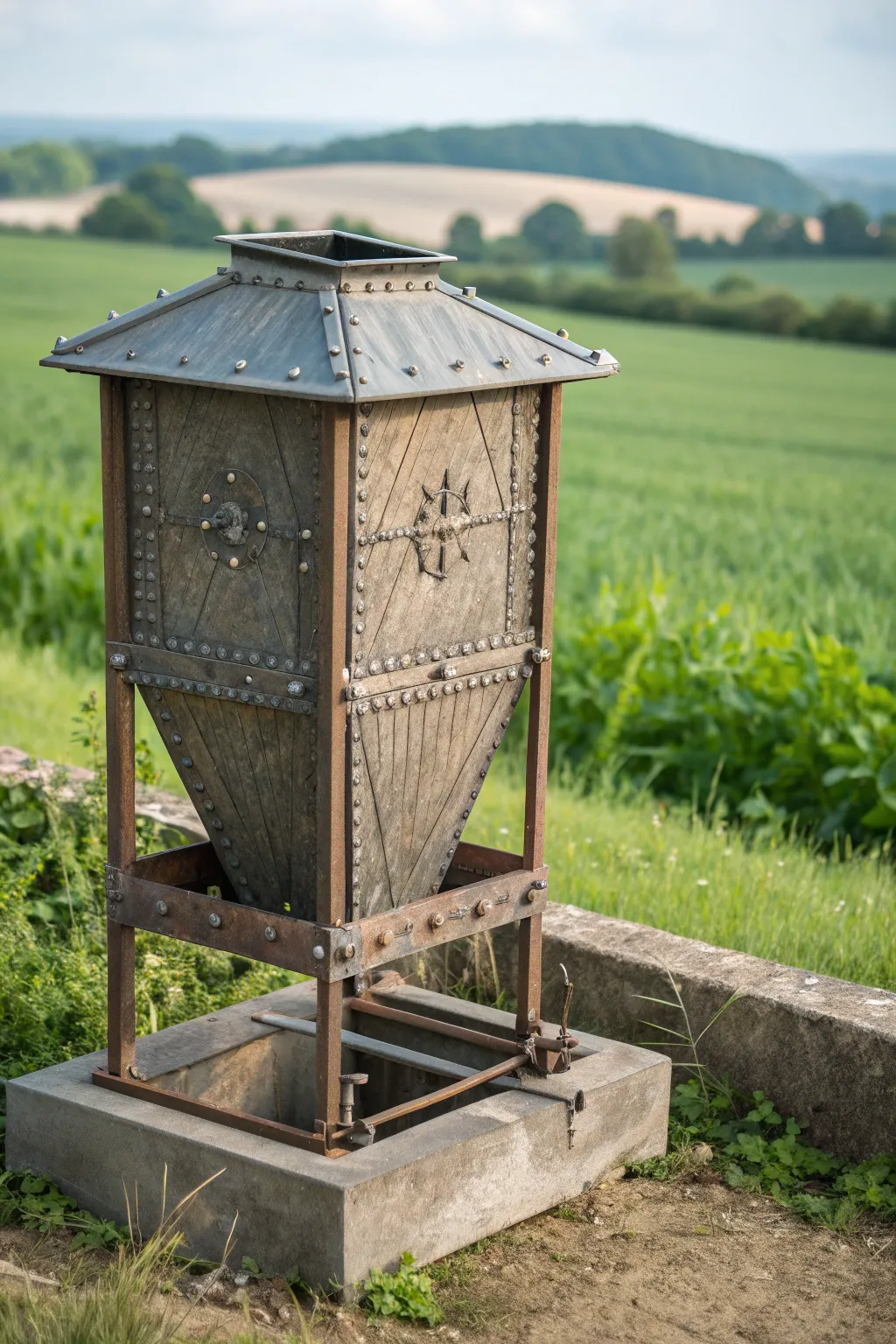 Design a hopper that uses gravity to feed pigs automatically. This innovative idea ensures a constant food supply and reduces manual feeding efforts.
