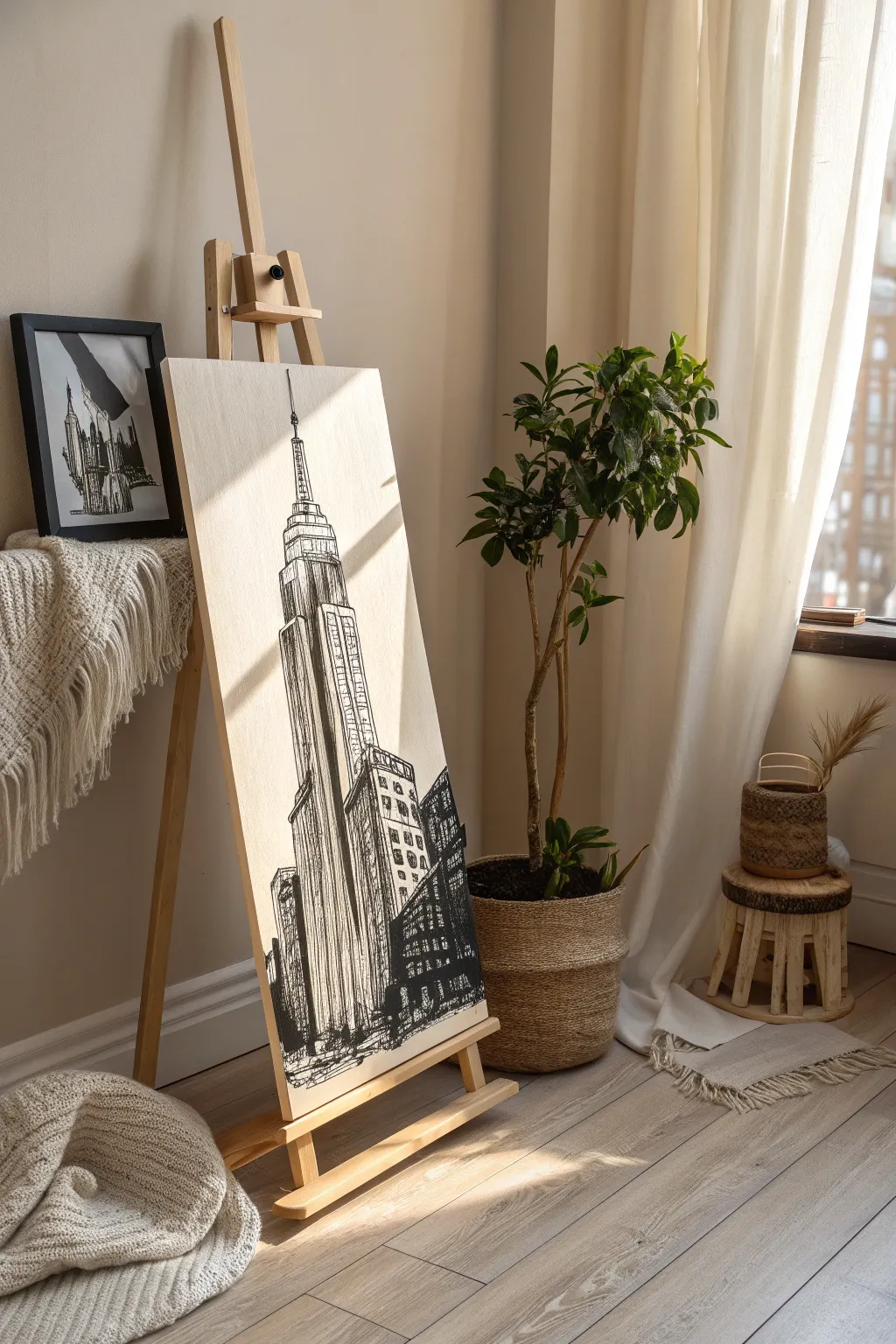 Opt for a monochrome palette for a sophisticated look. I painted a series of black and white cityscapes, and they add a touch of elegance to my space.