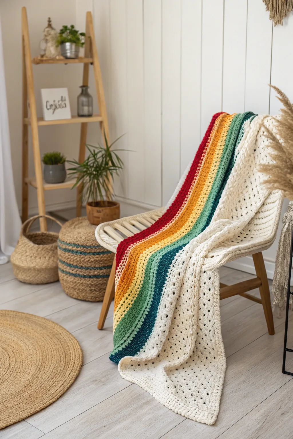 Make a statement with a rainbow crochet rug in your entryway or living room. These rugs are not only functional but also a great conversation starter.