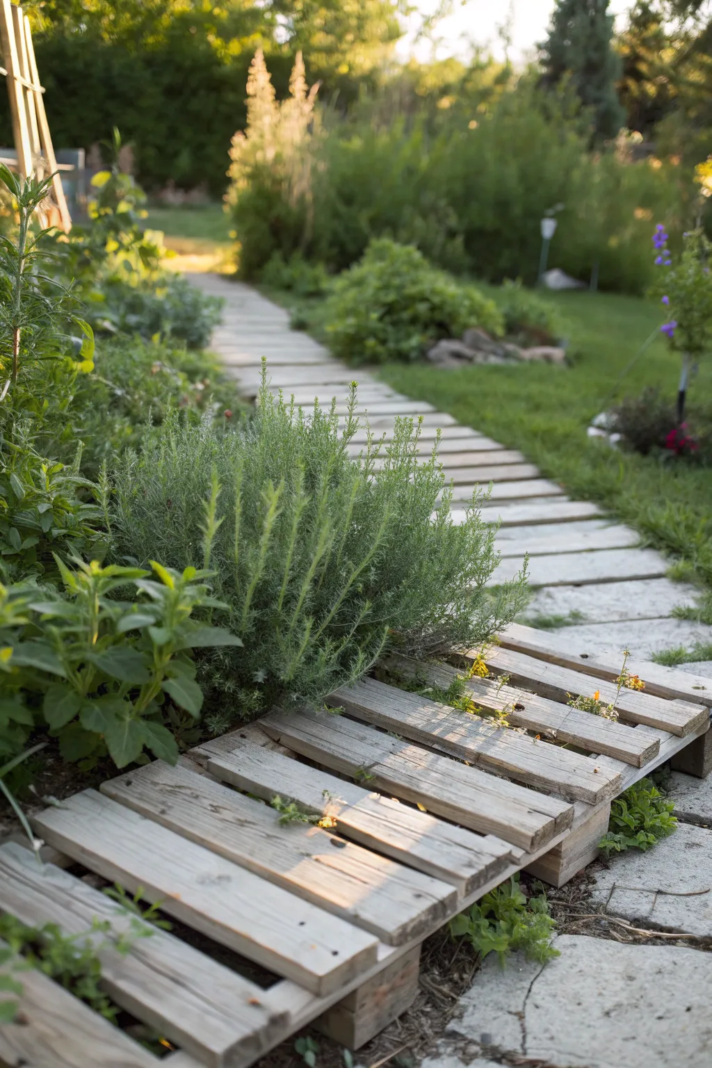 Line your walkway with herbs planted in the pallet slats. As you stroll through your garden, the aroma of fresh thyme or rosemary will accompany you.