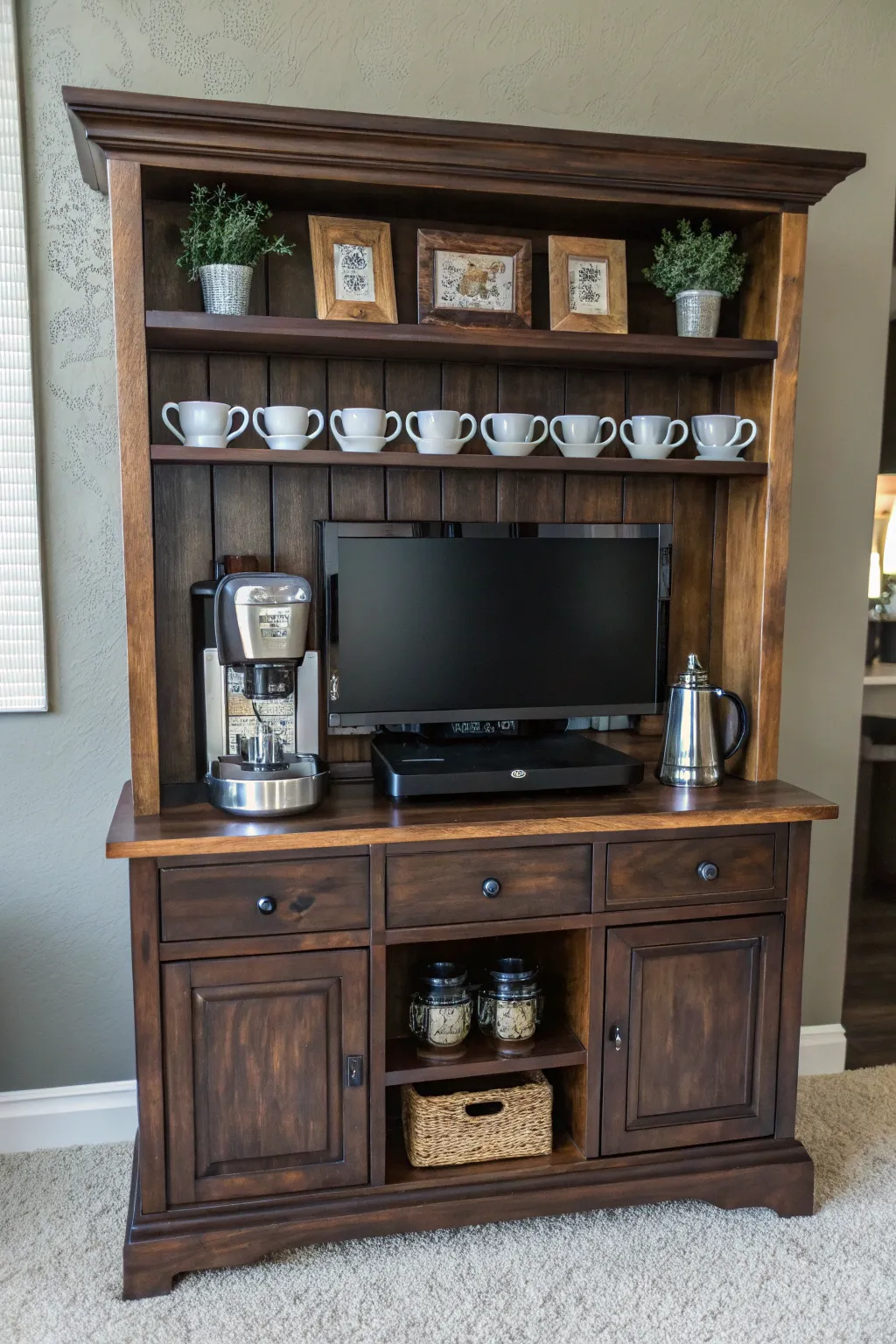 Transform your old TV stand into the ultimate coffee bar for a touch of craftsmanship and a caffeine boost.