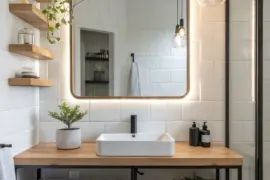 - Small Wooden Trolley on Wheels: Enhance bathroom accessibility by using this versatile and movable storage trolley.