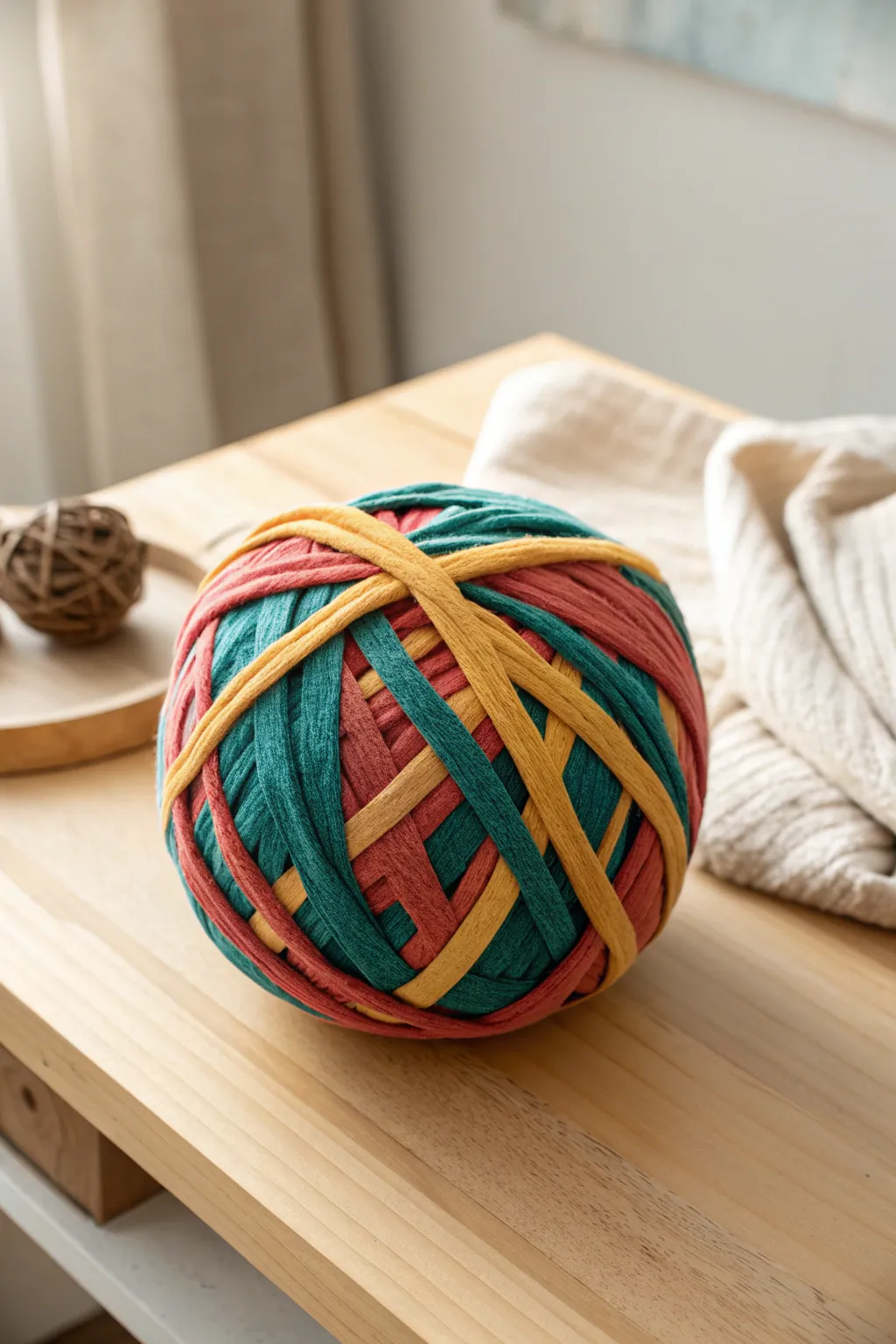 Transform your old tees into vibrant yarn art! 🌿 #UpcycledFashion #ScandiBoho