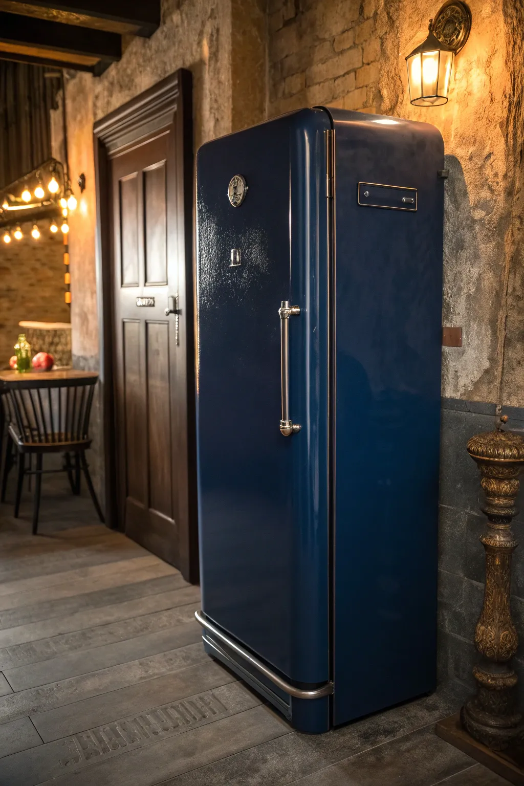Elevate your wine collection with a vintage fridge turned elegant wine cellar.